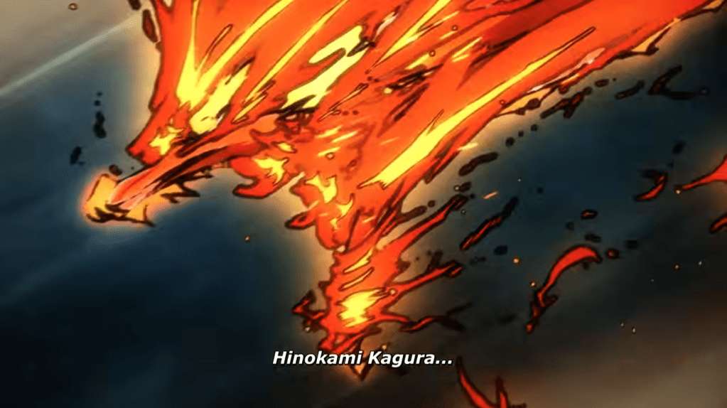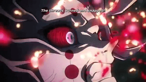 This is the part of the blog where I start talking about the plot significance of the scene. Tanjiro our main protagonist is up against the strongest demons he’s had to fight during his entire journey. Tanjiro is up against one of the 12 Moons ( Demons who have been given a ounce of the strongest demon in the world’s power.). Tanjiro is completely out of his league, being constantly pushed to his limit, his sword is broken and his spirit is almost broken too. Then demon he is up against launches an overwhelming attack, one that will surely kill Tanjiro, in his final moments Tanjiro’s life flashes before his eyes and he remembers a time when him and his sister were kids. He remembers a time when his frail and sickly father would muster all of his strength to do his ritualistic dance every year. This lights a fire inside of Tanjiro, he then calls upon his memories to rember the breathing technique that allowed his father to continuously dance regardless of his frail body. The fire ignites and Tanjiro can fight again, now being able to slash through the treads that originally broke his sword. Tanjiro is fiercely fighting against the demon who was once his oppressor driving it into a corner. This demon who hasn’t know defeat for countless years is getting driven back to the point of being scared. That’s when Tanjiro see’s his opening to finish the fight and he goes for the final blow. However the demon was ready with the counter attack and Tanjiro could lose his life in the process. Unknown to the both of them, Nezuko awakens exhibiting a power that a demon of her class shouldn’t have, especially considering she hasn’t consumed any humans to increase her strength. After burning all of the treads away Tanjiro is clear to land the final blow without any fear of a counter attack. Tanjiro’s blade hit’s it’s target and with a little bit of help from Nezuko, Tanjiro’s broken sword cuts clean through the demon’s neck effectively killing him.